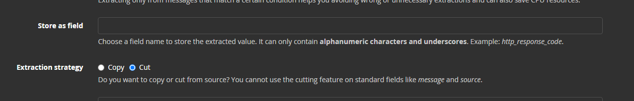 Example in this picture below, this shows Cut is enabled. What is does is remove data from the field, but since you stated you don’t have extractors or pipelines we probably can rule that out.